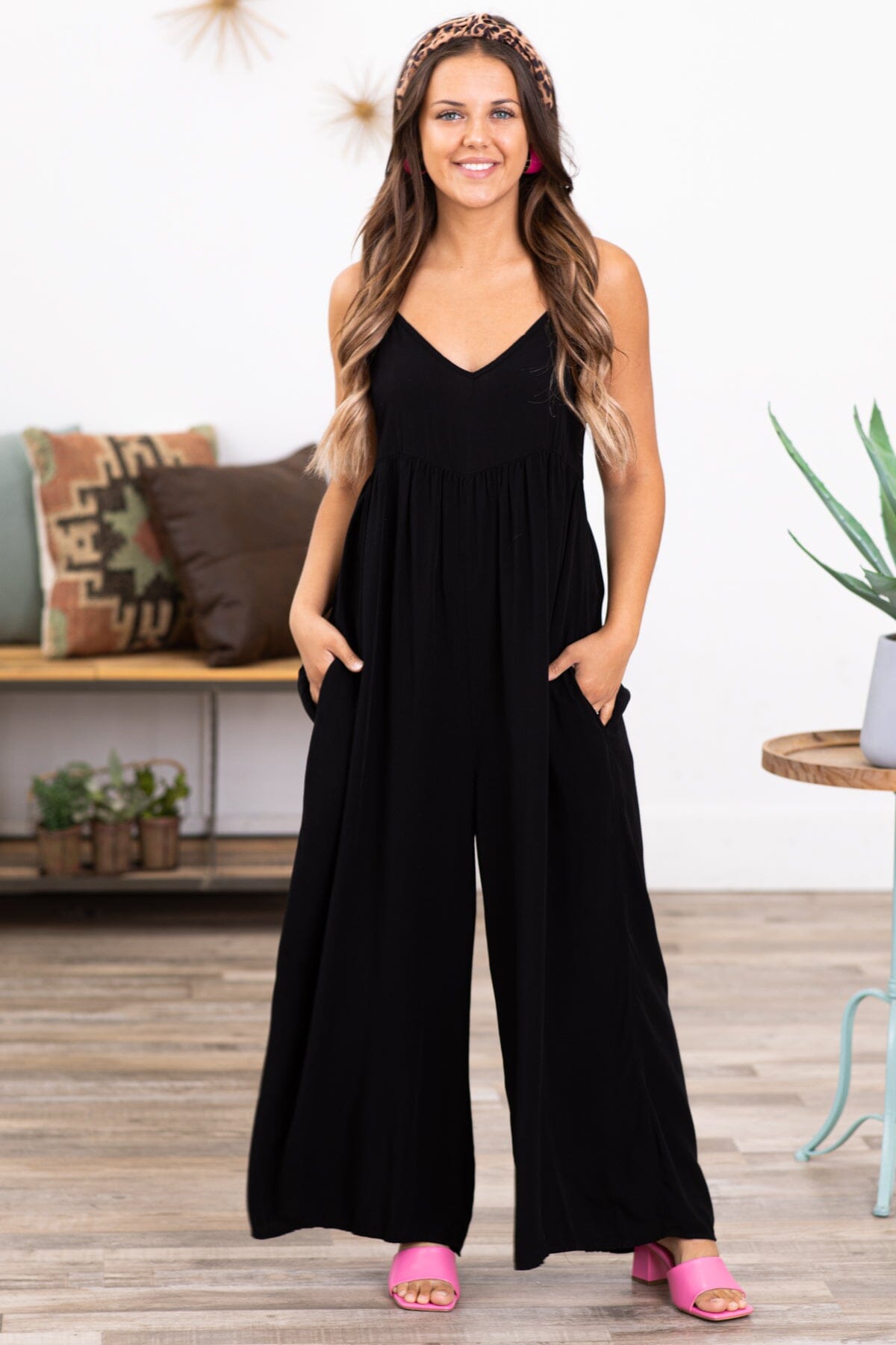 Black Wide Leg V-Neck Jumpsuit