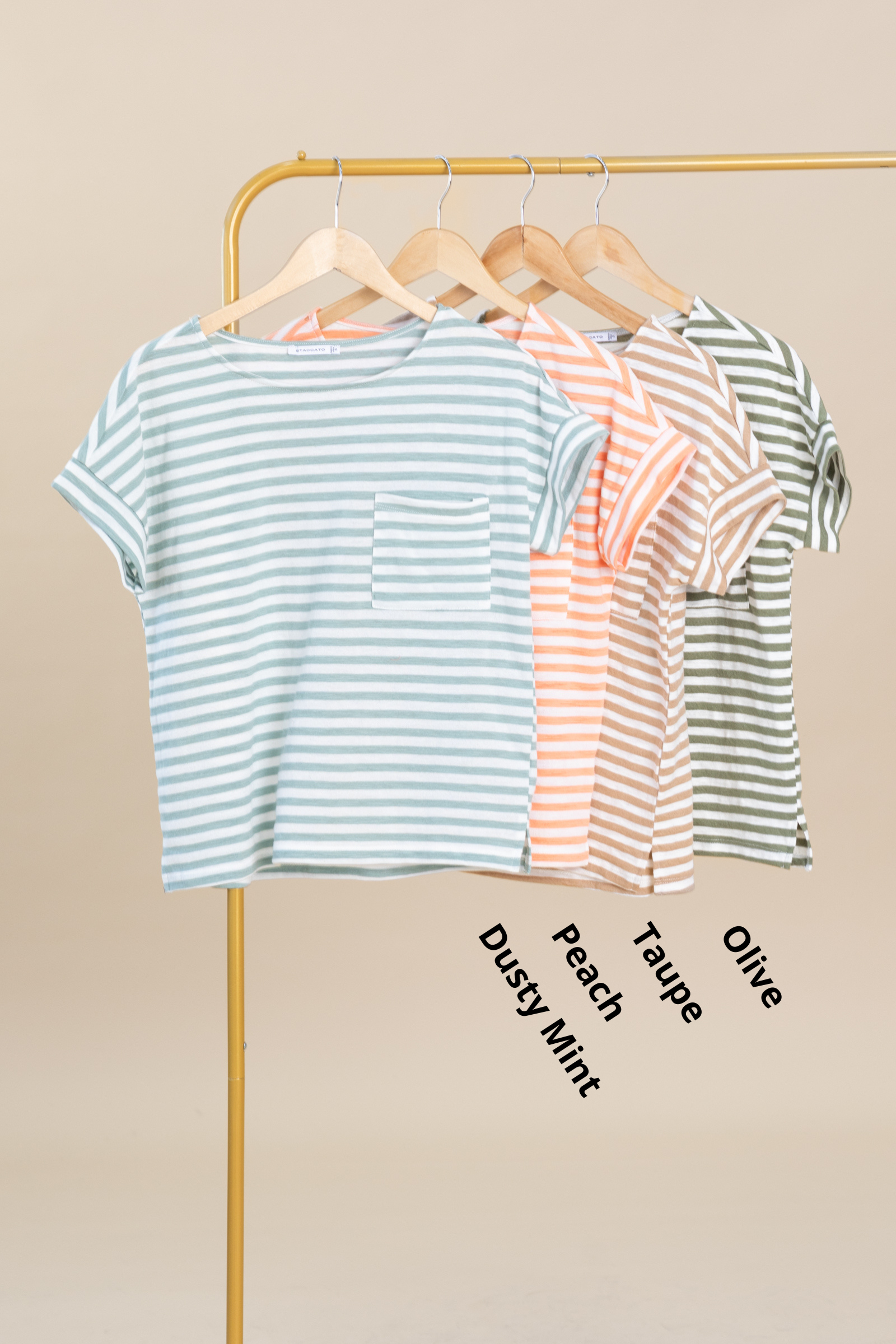Stripe Pocket Short Sleeve T-Shirts 79684736